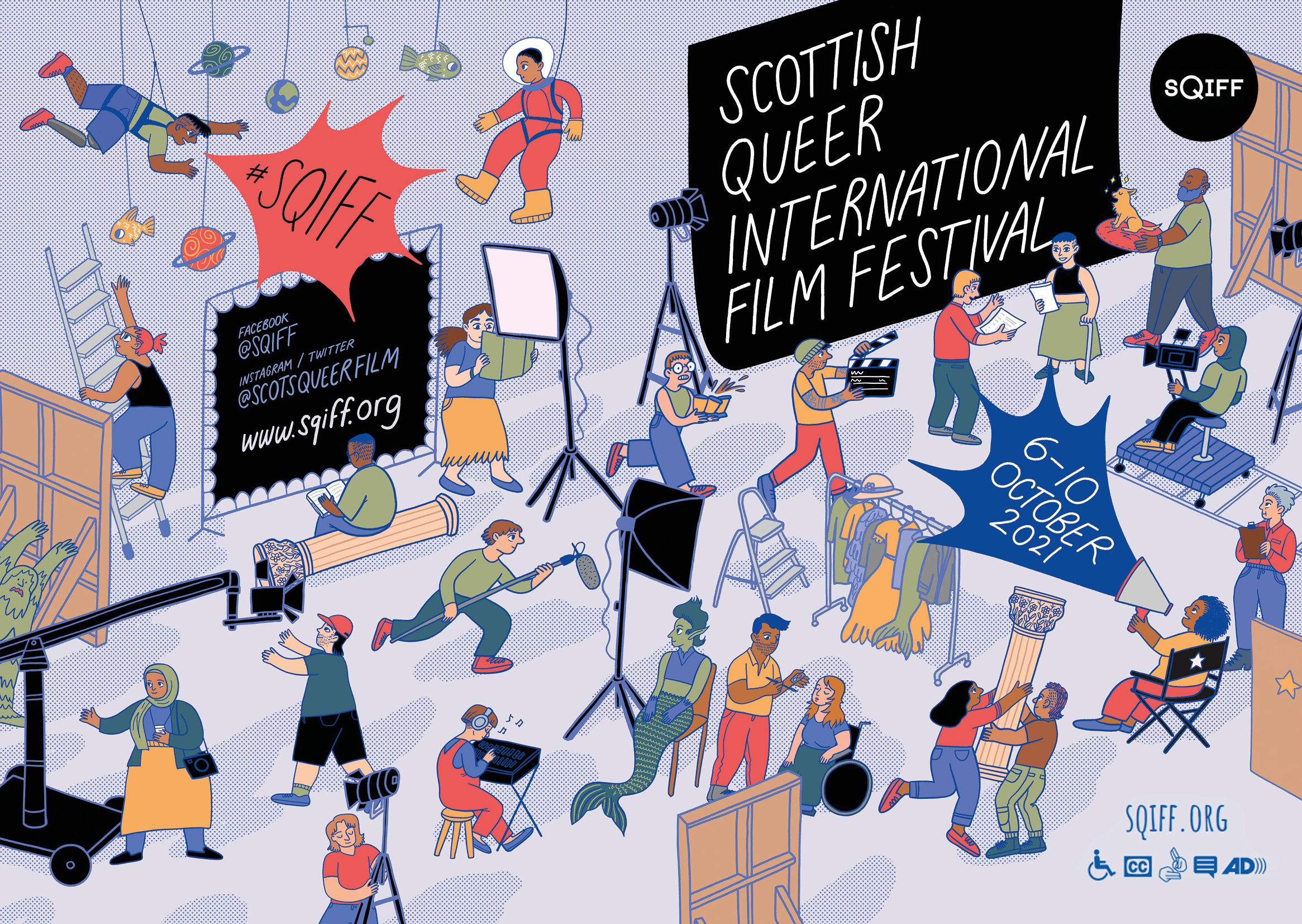 Brochure cover design for Scottish Queer International Film Festival 2021 for use on marketing materials and merchandise.